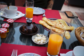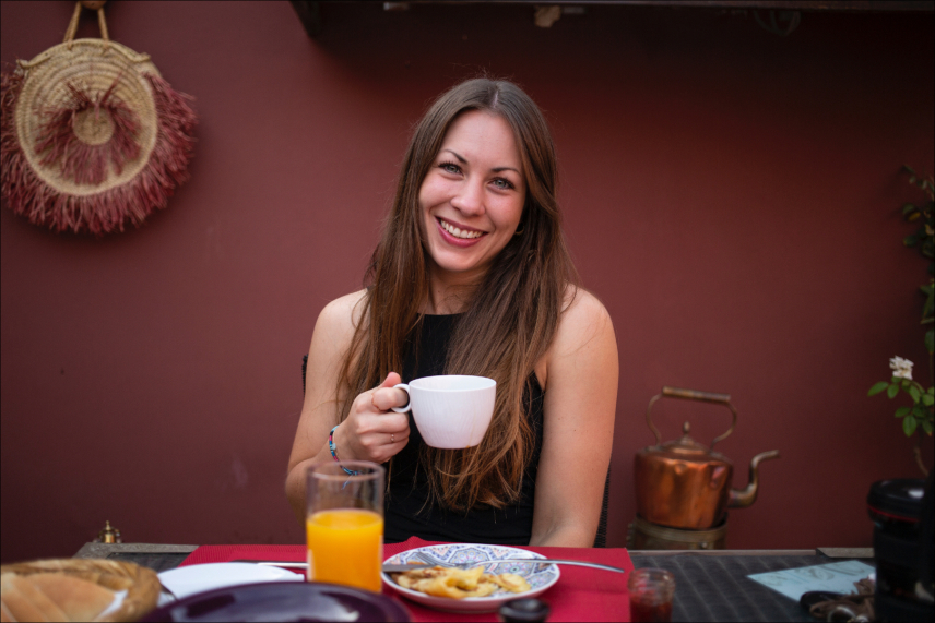 Unser Riad war sehr liebevoll eingerichtet. Zum Frühstück gab's frisch gepressten Orangensaft, super leckeren Kaffee, frisches Gebäck,