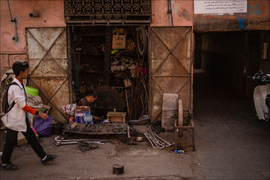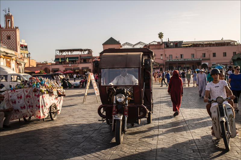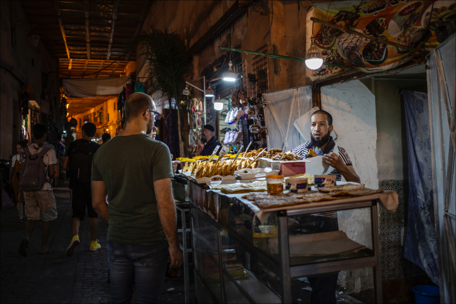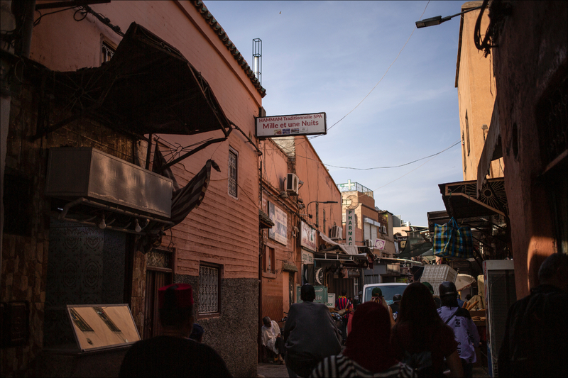 Auf dem Rückweg zeigte er uns Marrakesch. Er führte uns durch die verwinkelten Souks, vorbei an kleine Bäckereien bis zu den Berberfrauen,