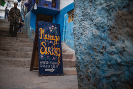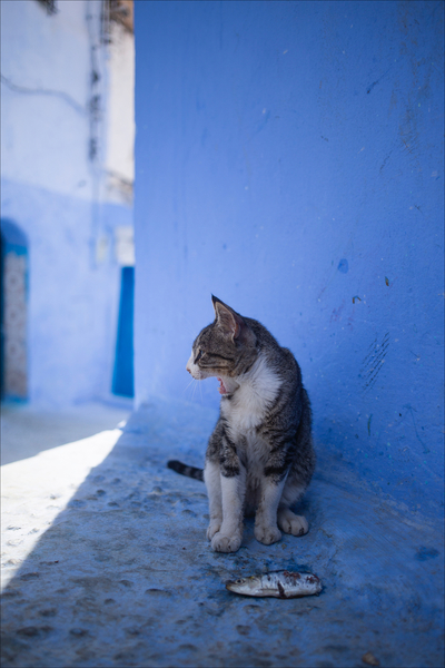 Wir reisten weiter Richtung Norden. Chefchaouen heißt die blaue Stadt Marokkos, die man unbedingt gesehen haben sollte. Die ganze Stadt leuchtet in blauen Farben. Überall streunen Katzen durch die Gassen, die Menschen sind unglaublich freundlich und hilfsbereit.
