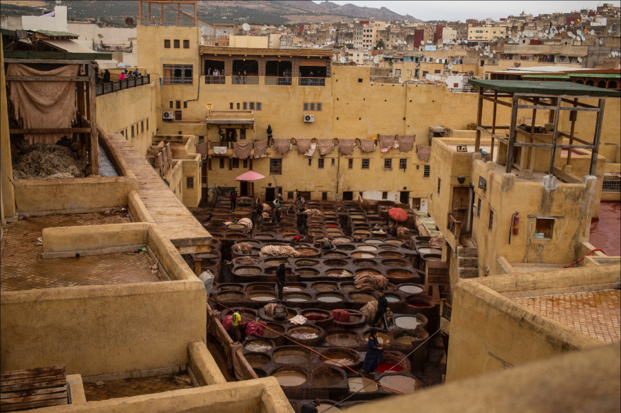 Unsere Reise endete in Fèz. Von dort ging unser Flug zurück nach Deutschland. Die Stadt zählt zu einer der vier Königsstädte Marokkos. Die Altstadt ist umgeben von Mauern, kleine verwinkelte Gassen laden gradezu zum Verlaufen ein. Und tatsächlich haben wir uns das erste Mal dort in einer Gasse verlaufen. Mit einem ziemlich mulmigen Gefühl, verfolgt von Marokkanern, haben wir es per Handy wieder rausgeschafft - nichts für schwache Nerven :-) Wir schauten uns unter anderem die Ledergerbereien an, den Geruch sollte man aushalten können.